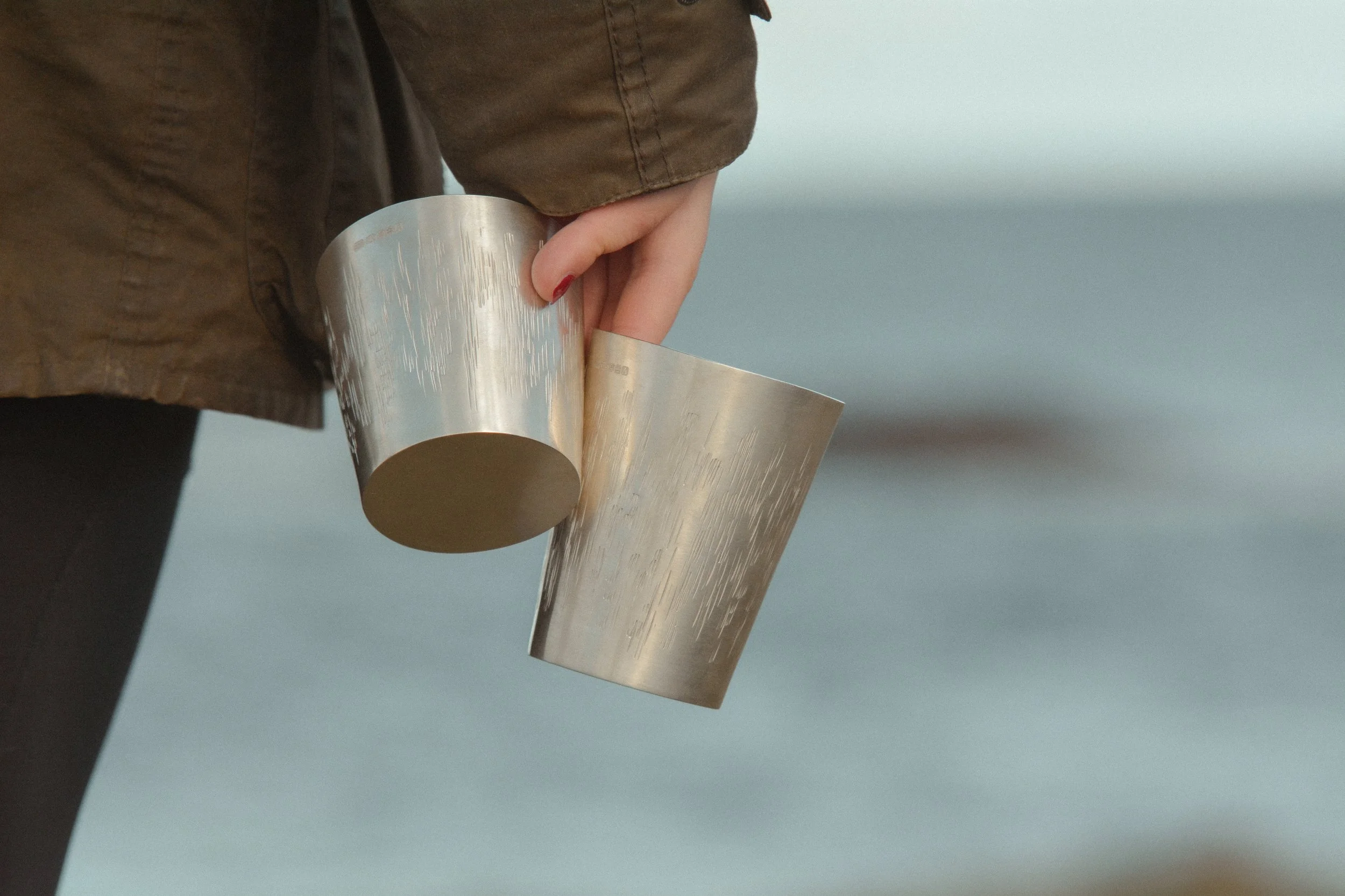 Designed for everyday use as much as for display, these silver cups are made to be enjoyed, taken to the beach, shared around a fire, or used to savour a quiet drink. Over time, the surface of each cup will develop a gentle patina, along with its own unique textures becoming richer with every use.